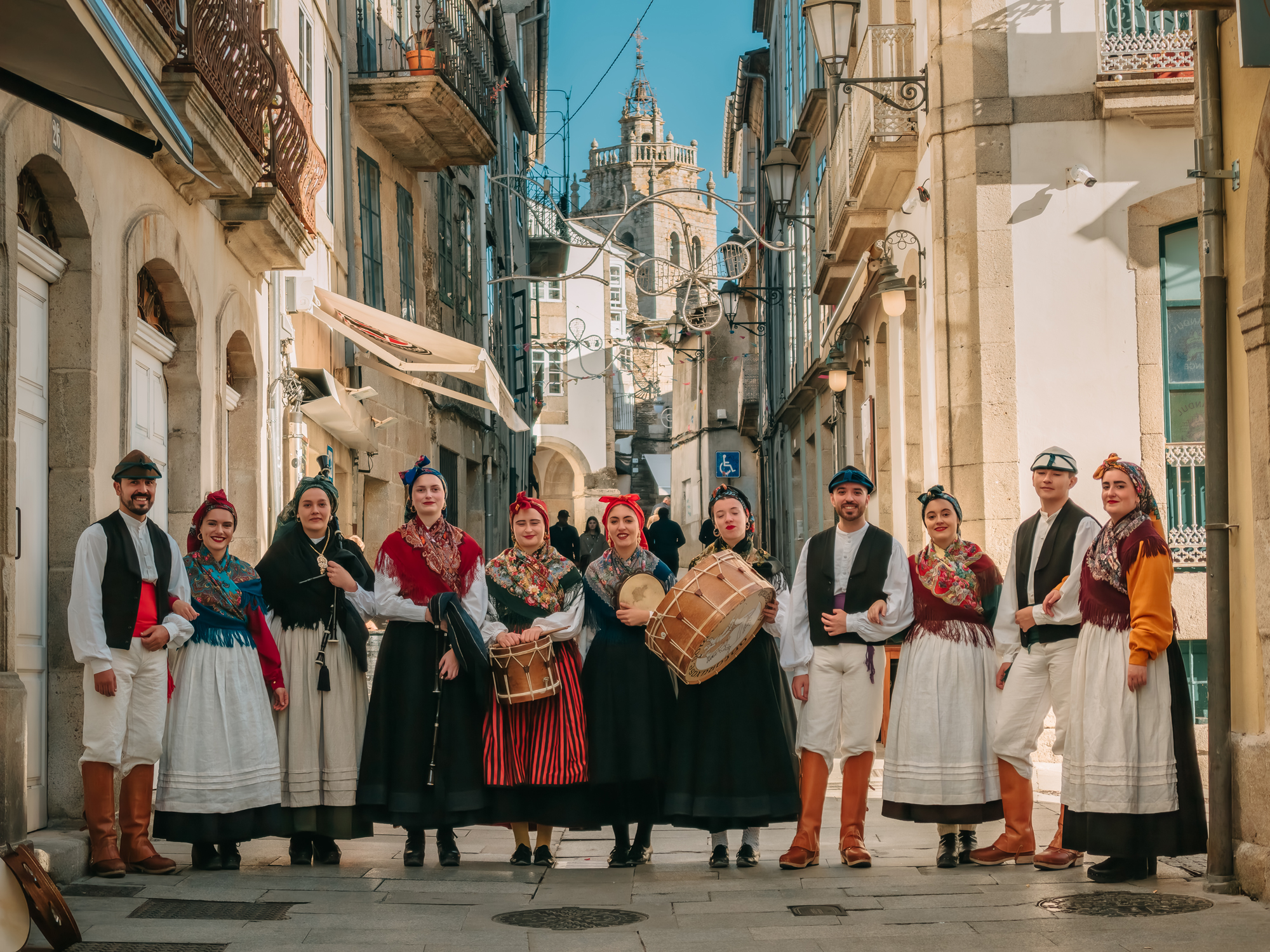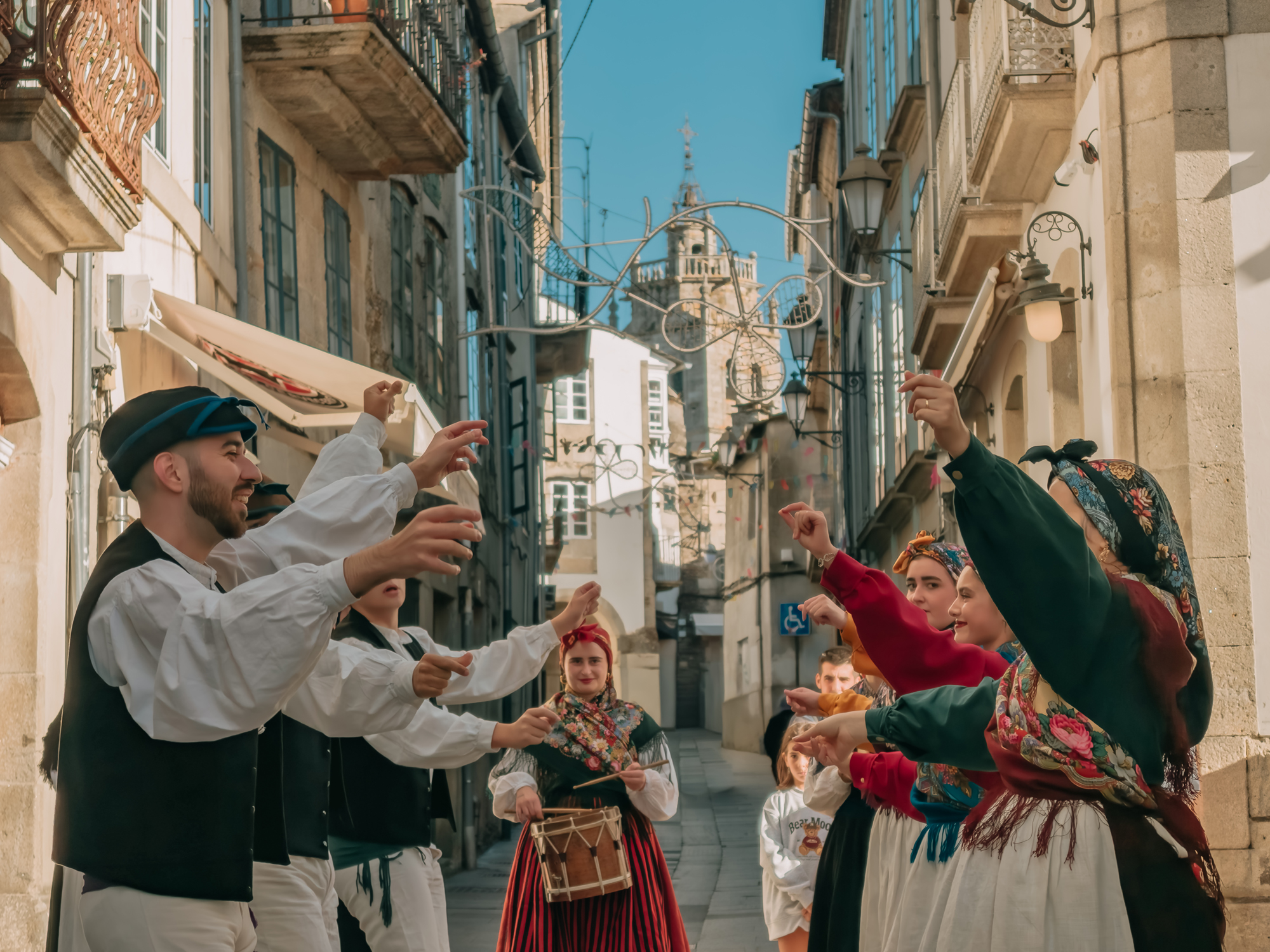 Music and dance remain at its heart — the sound of bagpipes leading the rhythm of the muiñeira, a spirited folk dance that embodies Galicia’s sense of community and joy. On the streets, you might spot locals wearing traditional outfits of embroidered shawls and wooden clogs, moving in step with melodies that have been passed down through generations.