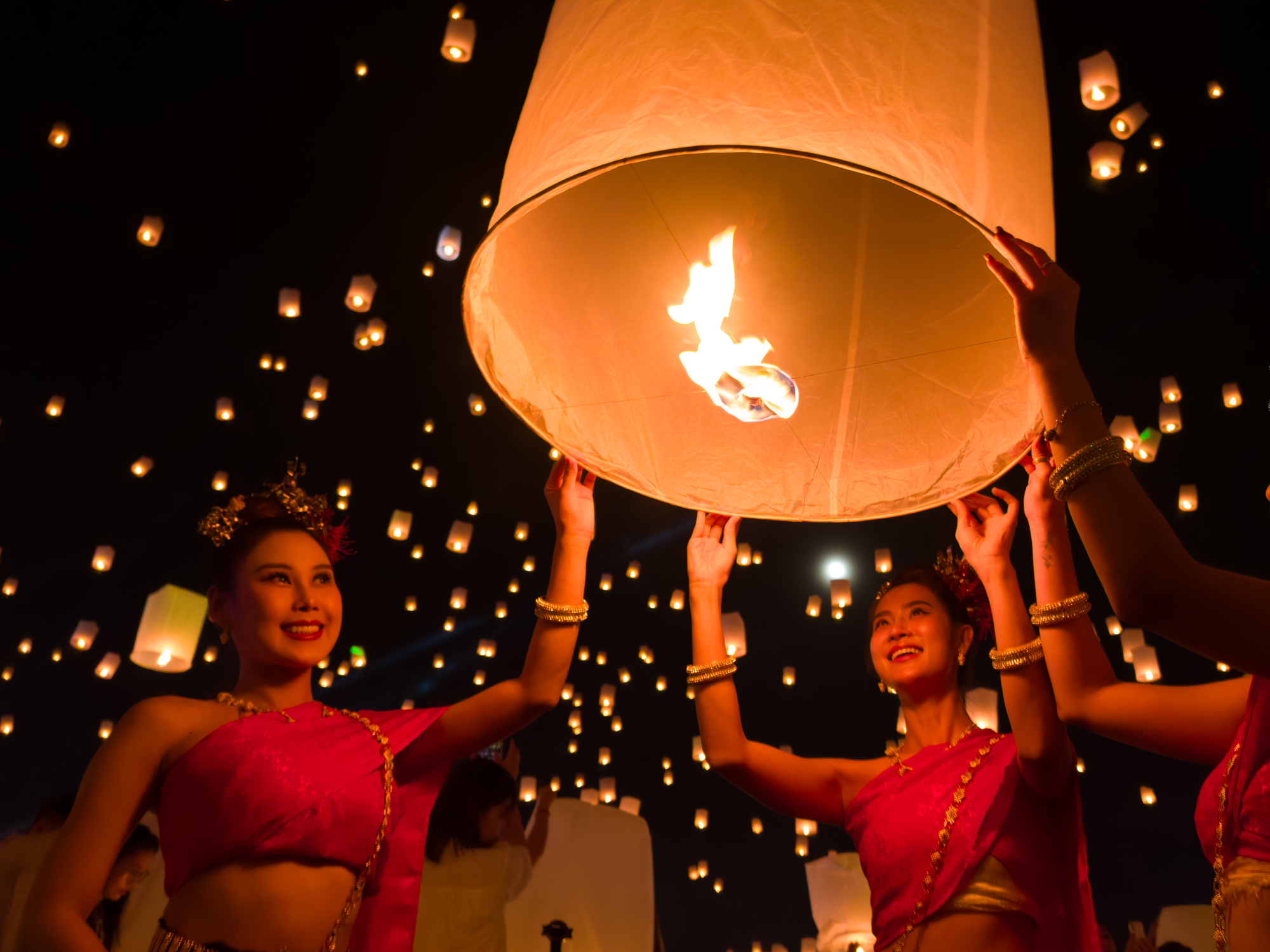 In Chiang Mai, Thailand, night becomes the canvas for one of Asia’s most breathtaking celebrations. During Yi Peng, thousands of lanterns rise into the sky, carrying hopes and prayers. At the same time, Loy Krathong fills rivers with glowing offerings meant to honor the water goddess and release misfortune.