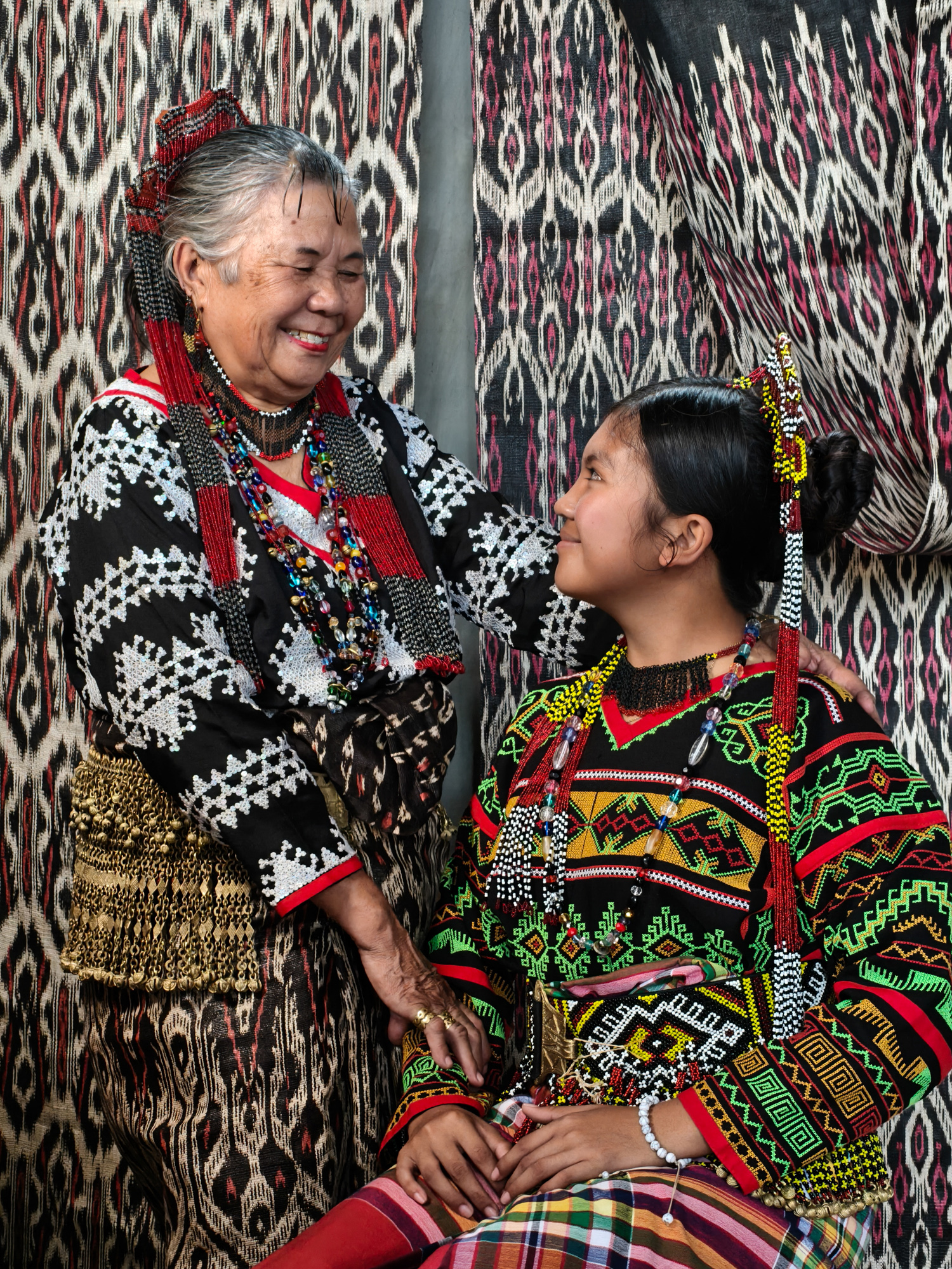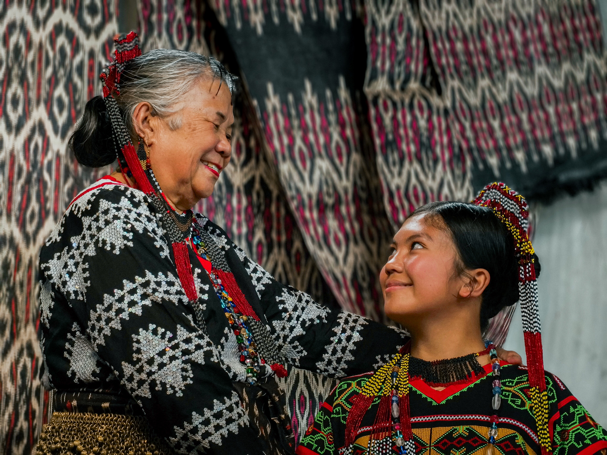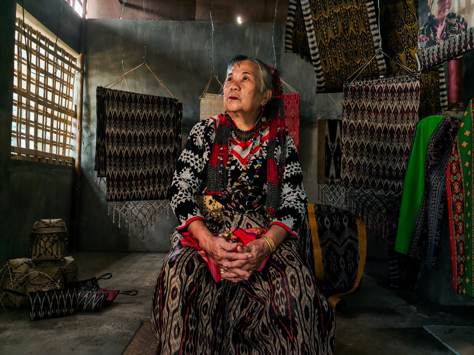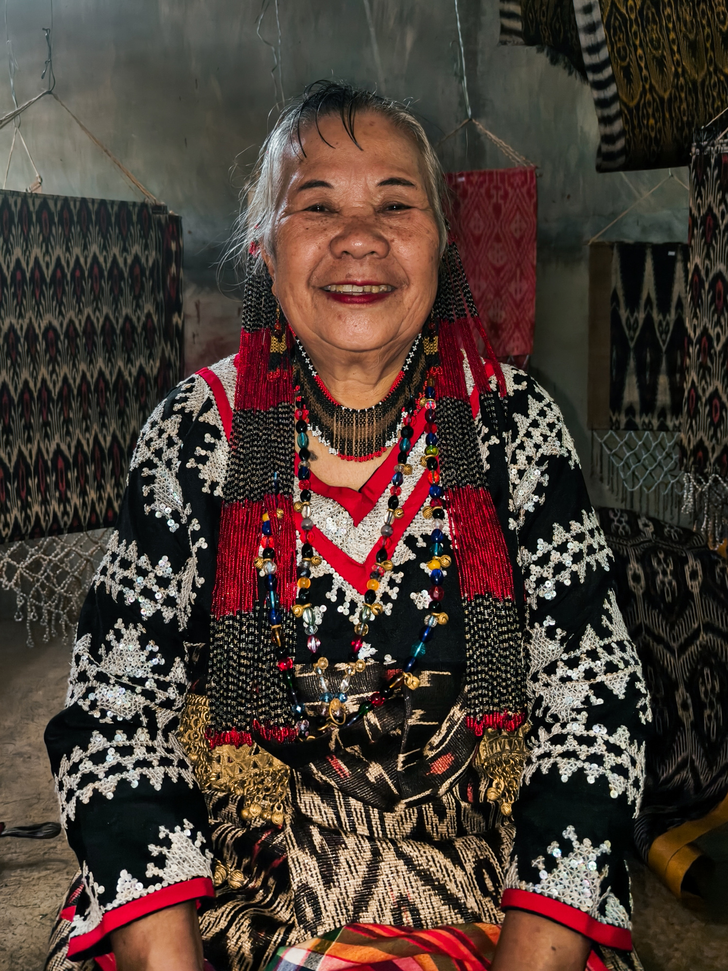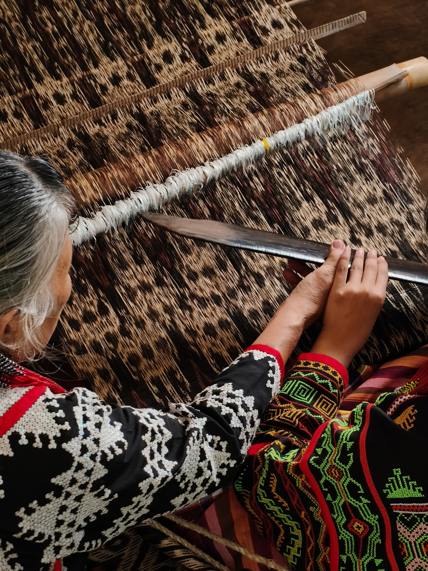 Today, her daughter-in-law Sebulan Dulay, now 80, celebrates that legacy. While she does not dream the patterns herself, she was taught directly by Lang Dulay. Sebulan teaches young weavers in her community, along with the rituals and meanings behind each motif.