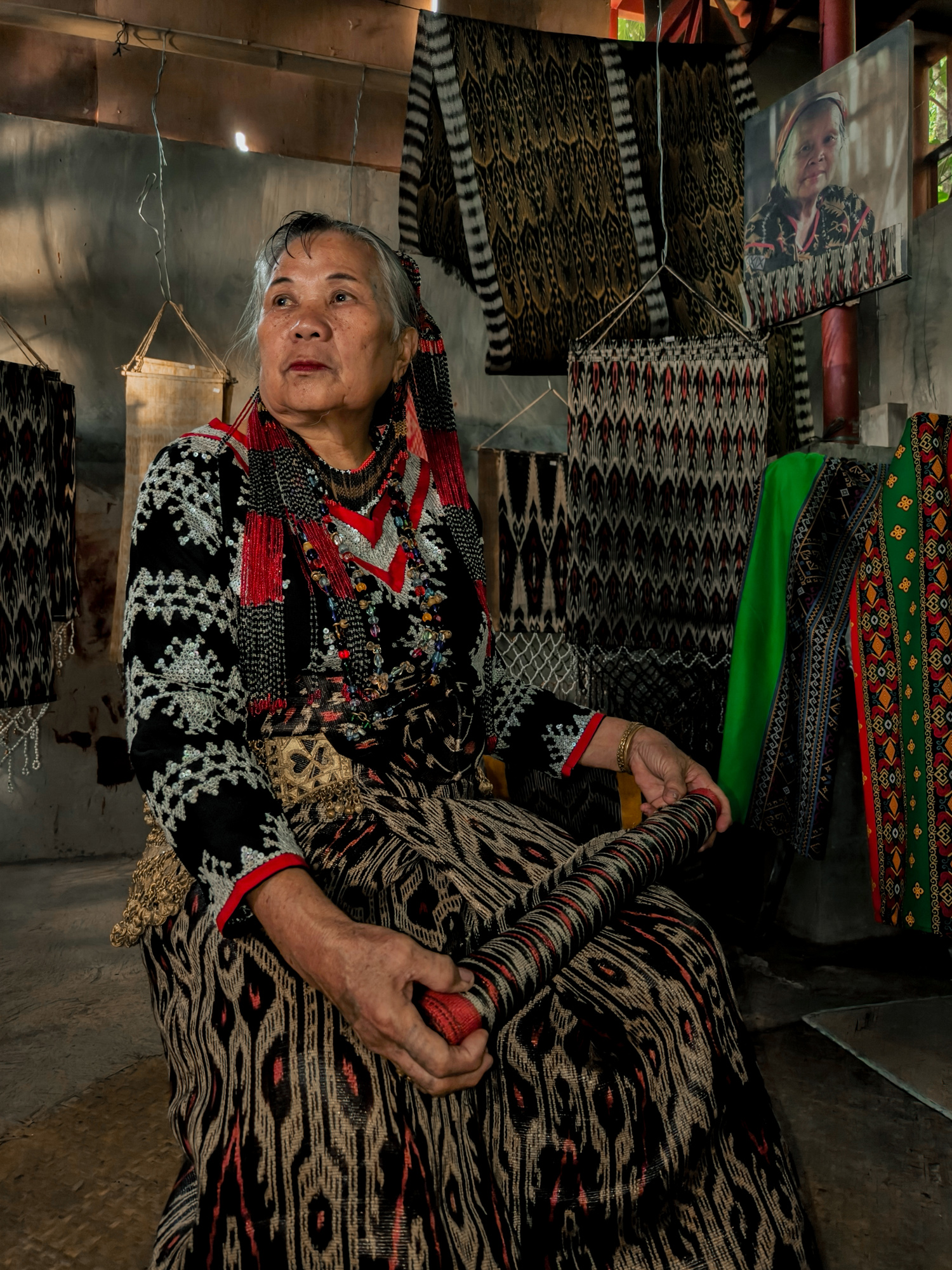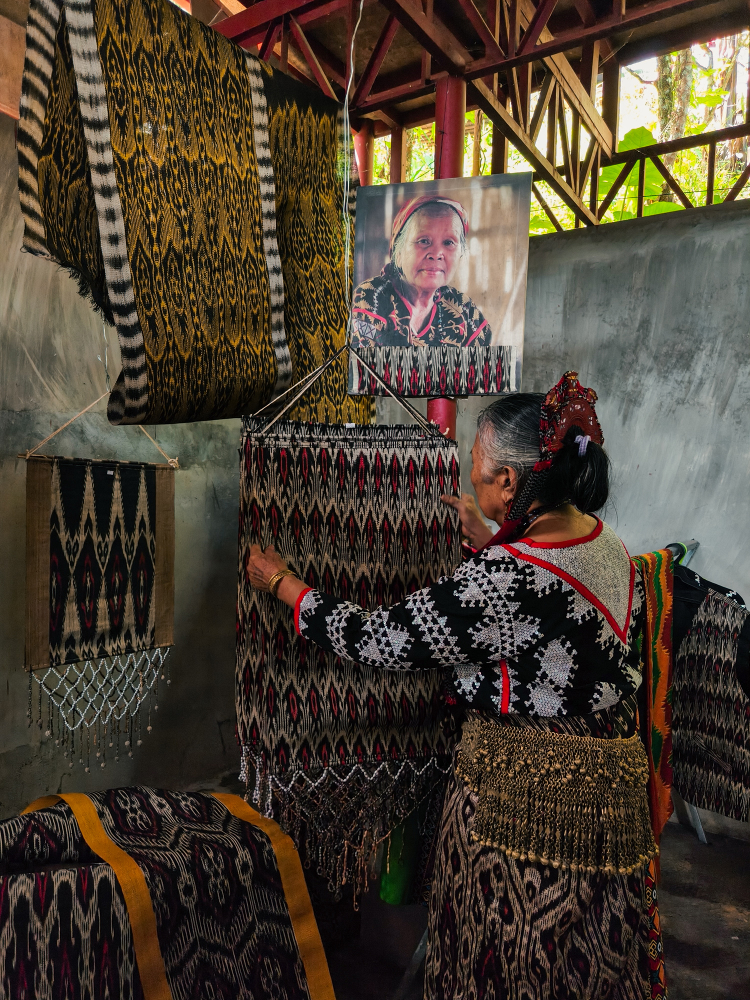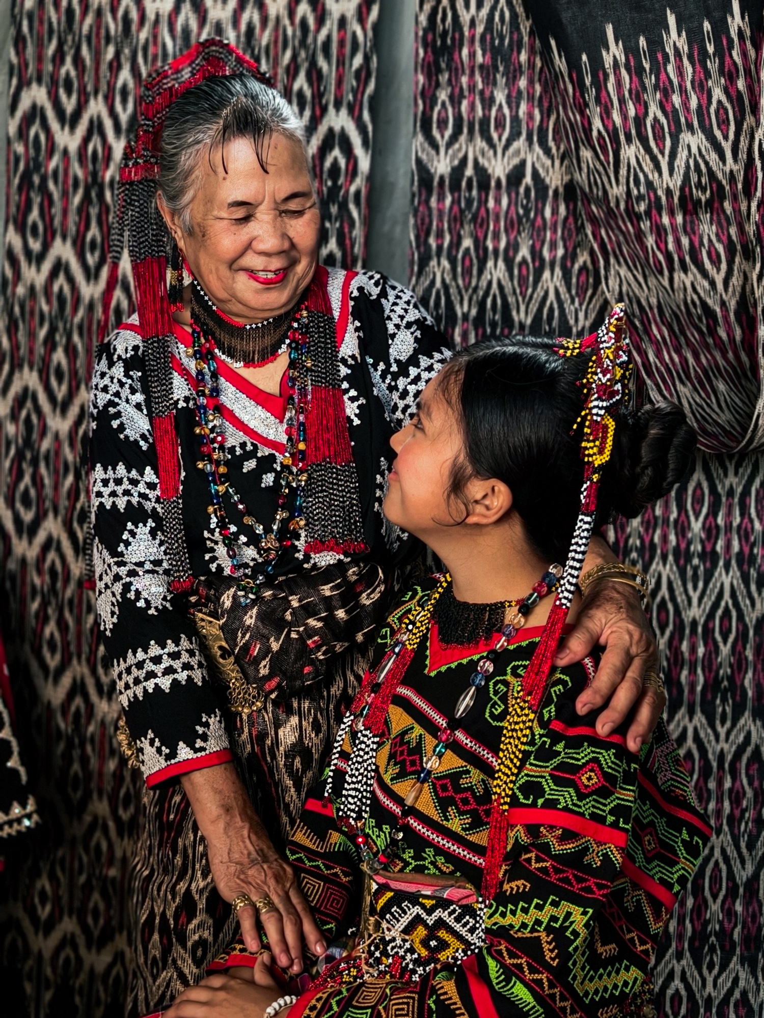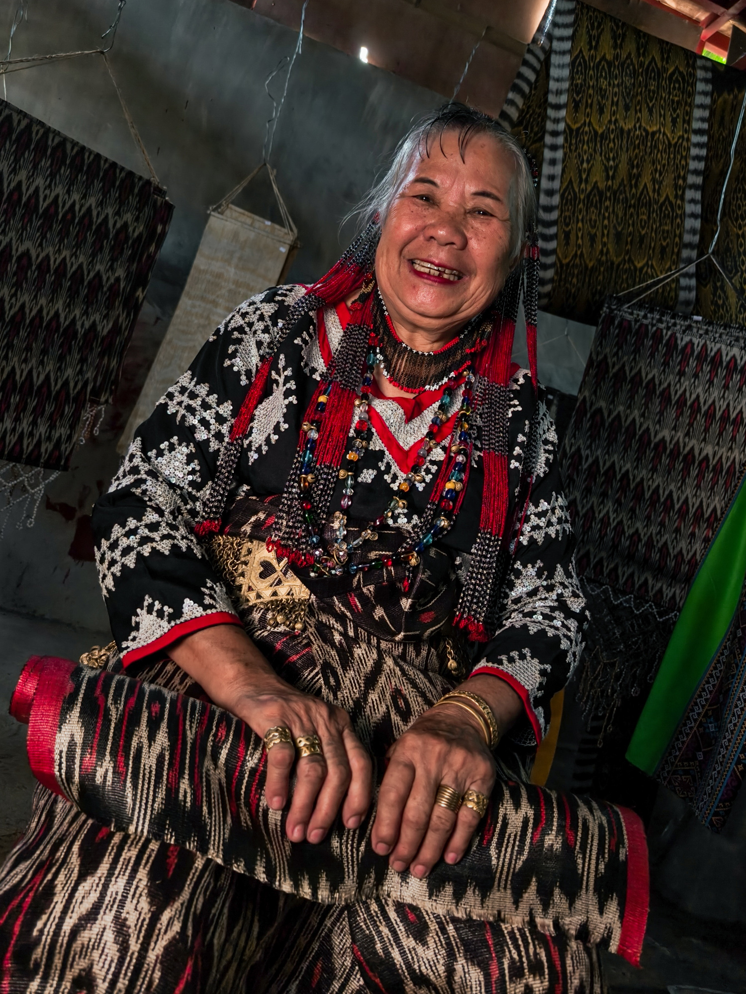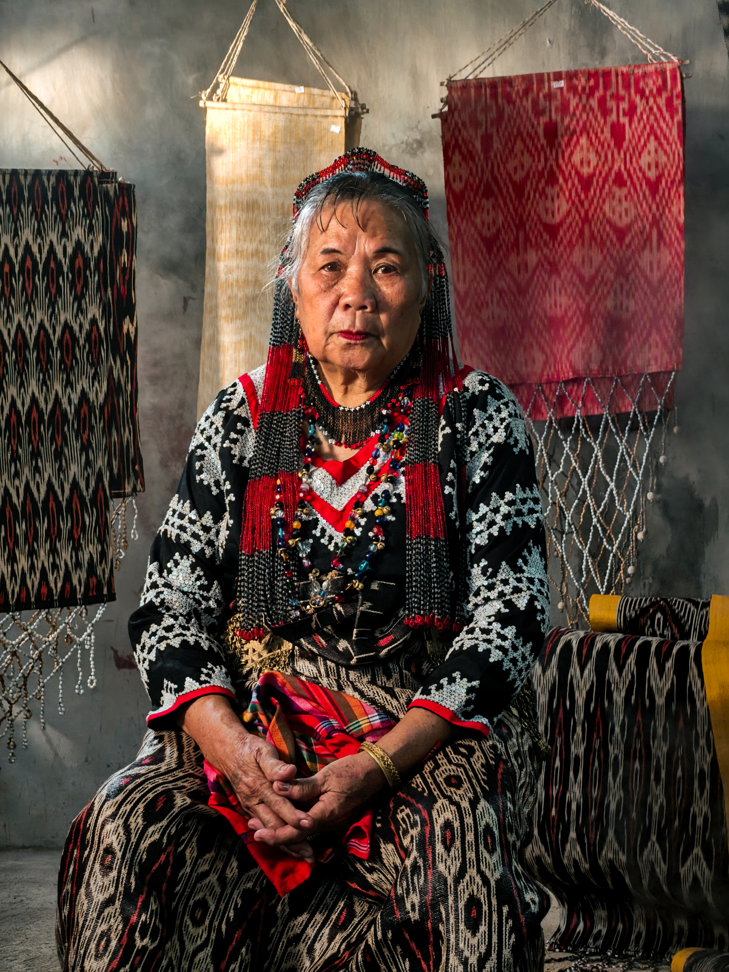 Today, her daughter-in-law Sebulan Dulay, now 80, celebrates that legacy. While she does not dream the patterns herself, she was taught directly by Lang Dulay. Sebulan teaches young weavers in her community, along with the rituals and meanings behind each motif.