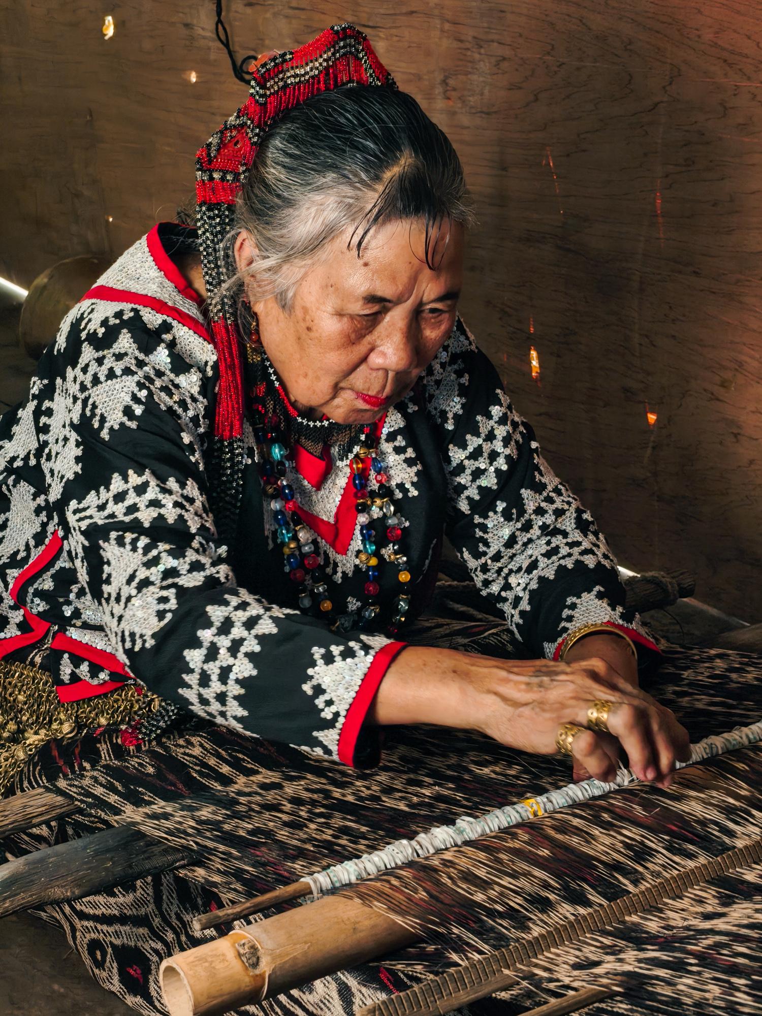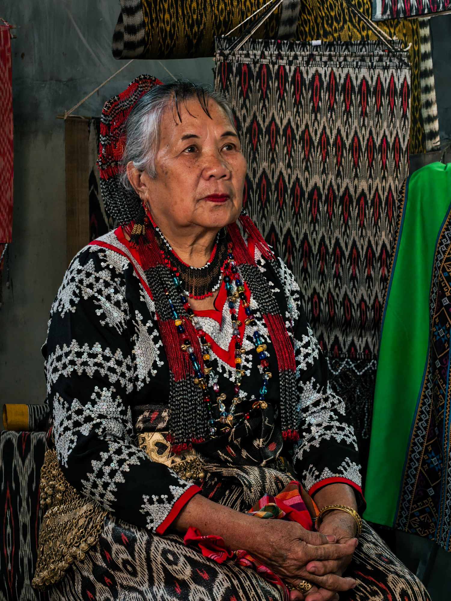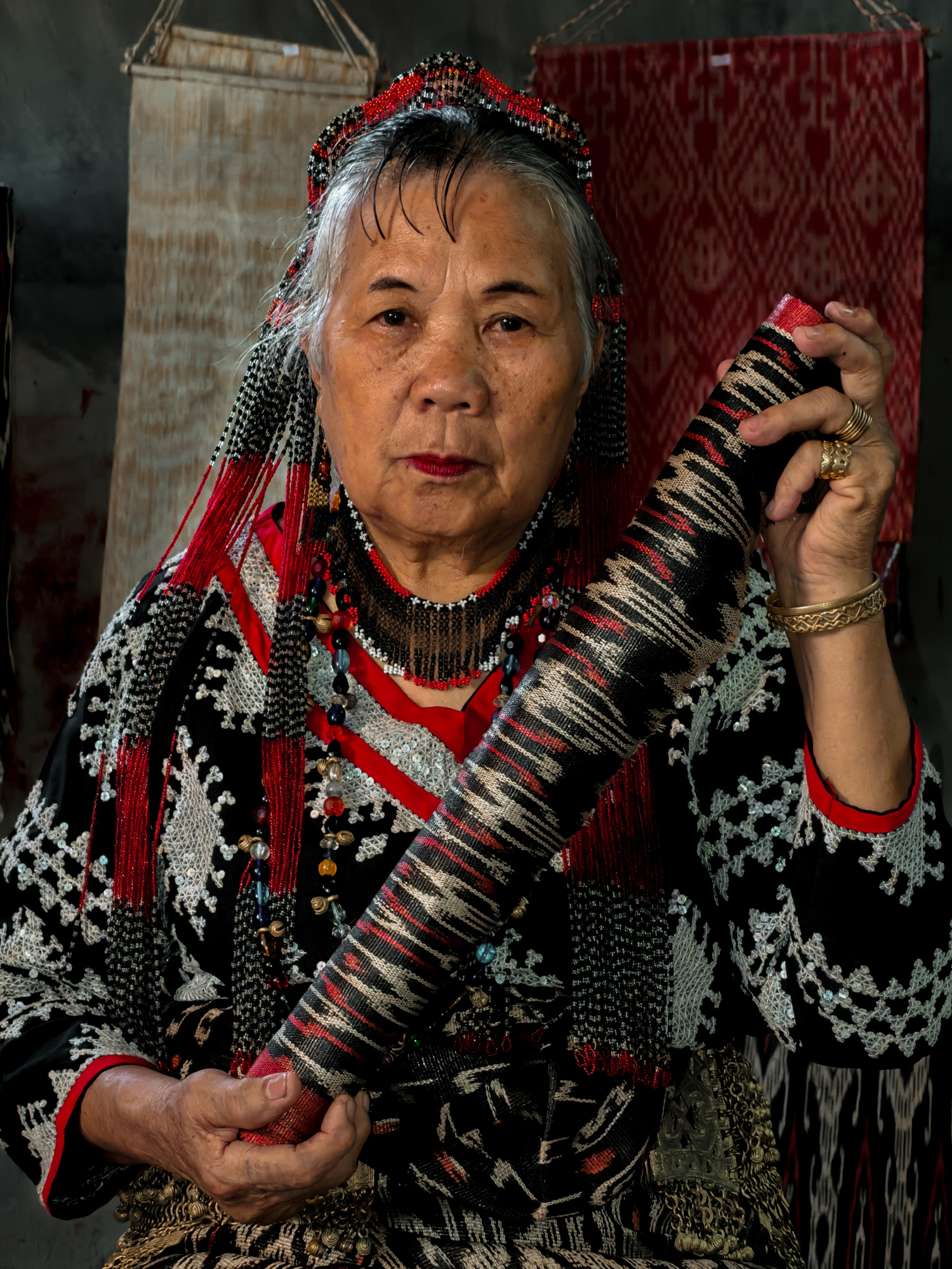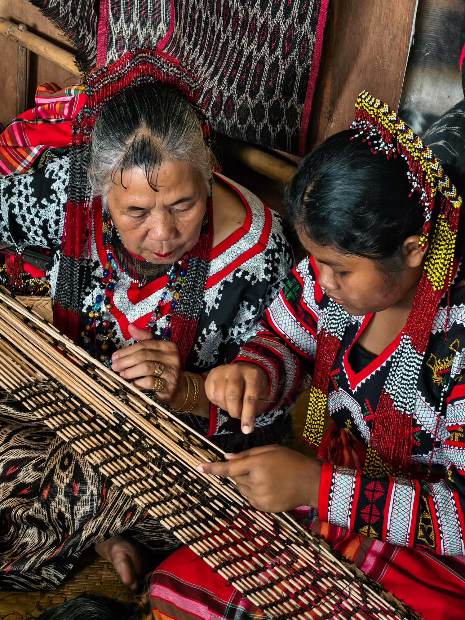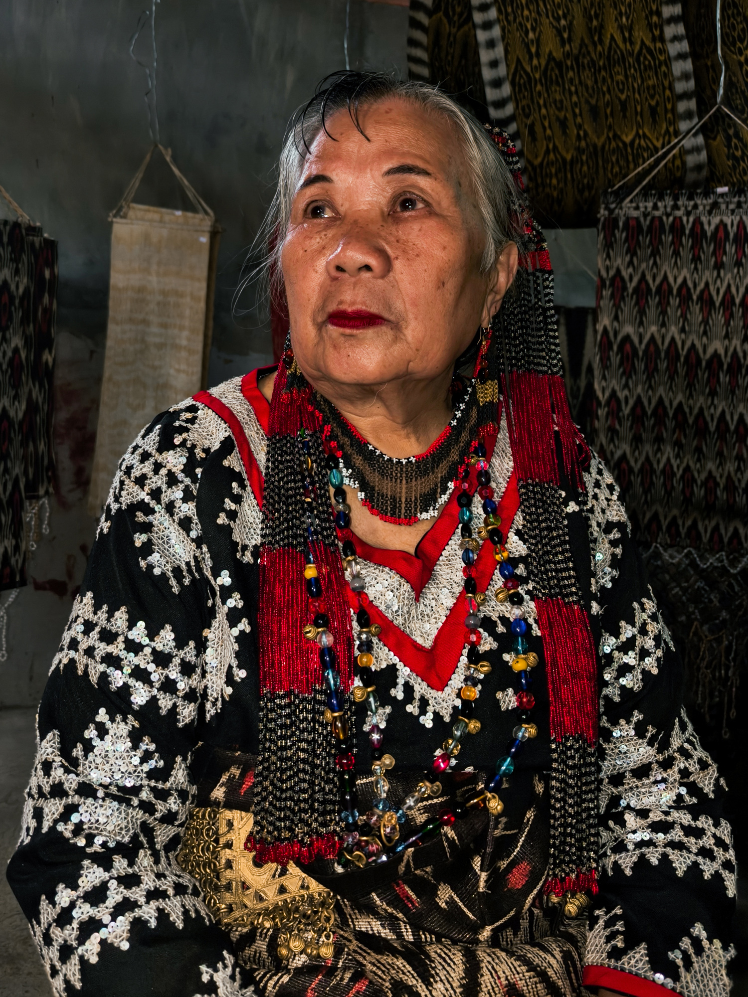 Today, her daughter-in-law Sebulan Dulay, now 80, celebrates that legacy. While she does not dream the patterns herself, she was taught directly by Lang Dulay. Sebulan teaches young weavers in her community, along with the rituals and meanings behind each motif.