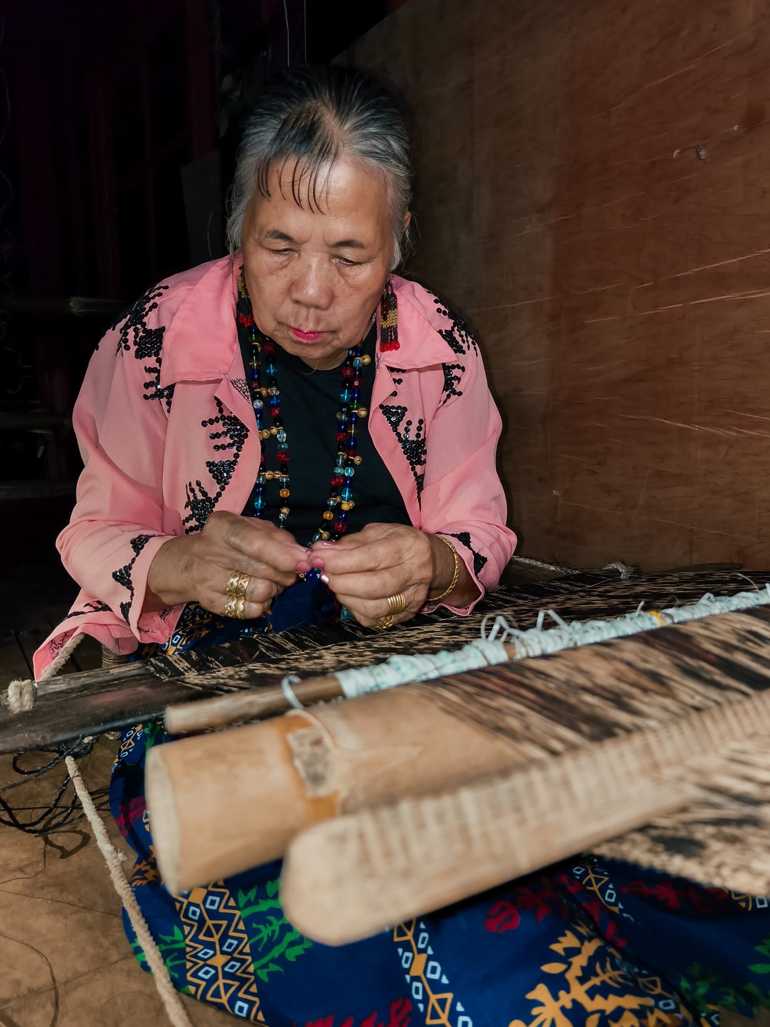 She remains committed to preserving the integrity of Tnalak, never mechanising the process. “Now, designs are often printed on, because many no longer know how to weave with abaca,” she explains. “But the 32 steps should not be forgotten — it’s a part of Tboli tradition that should never be lost.”